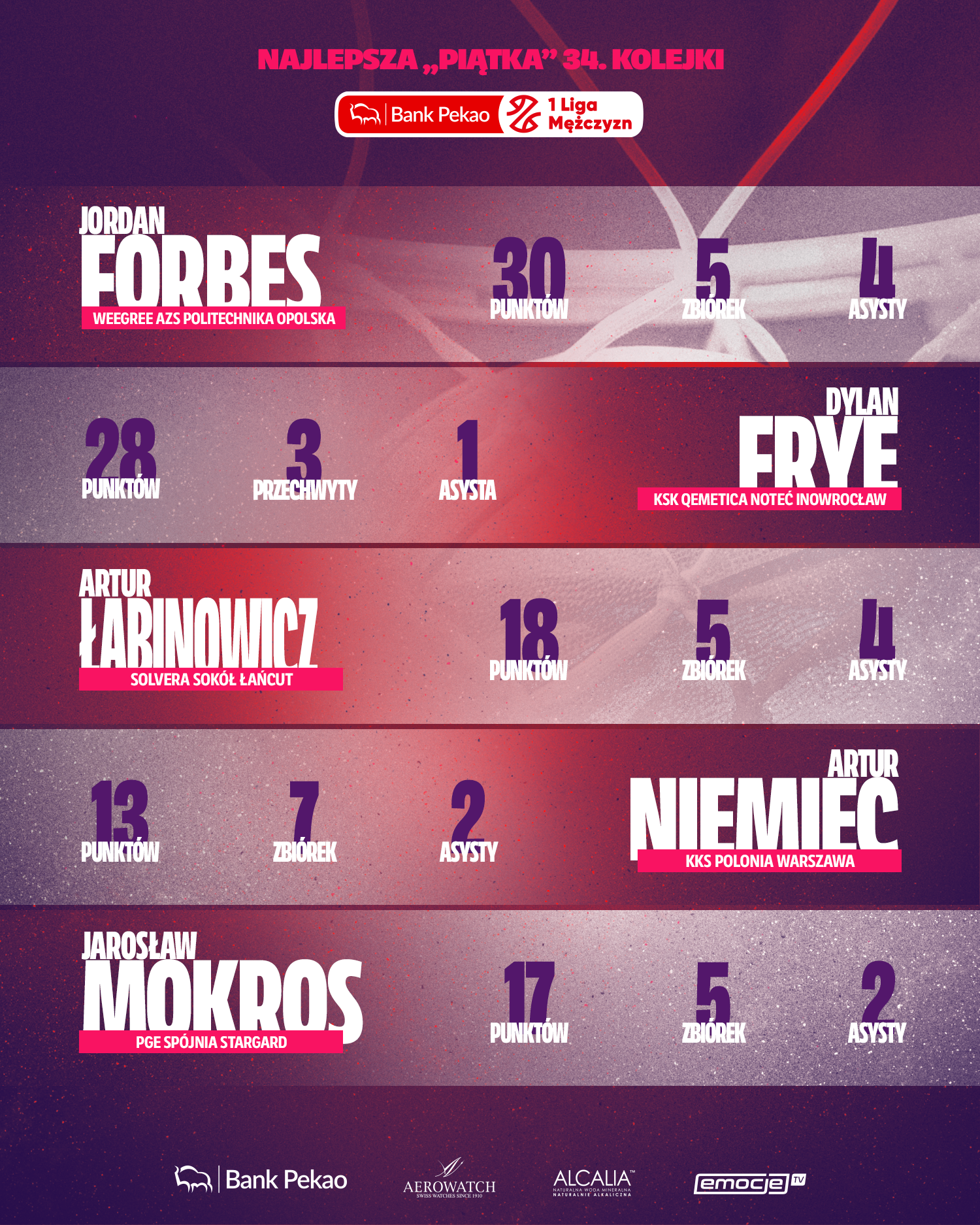 30 punktów, 5 zbiórek i 4 asysty w zwycięskim meczu z Novimex Polonią 1912 Leszno
