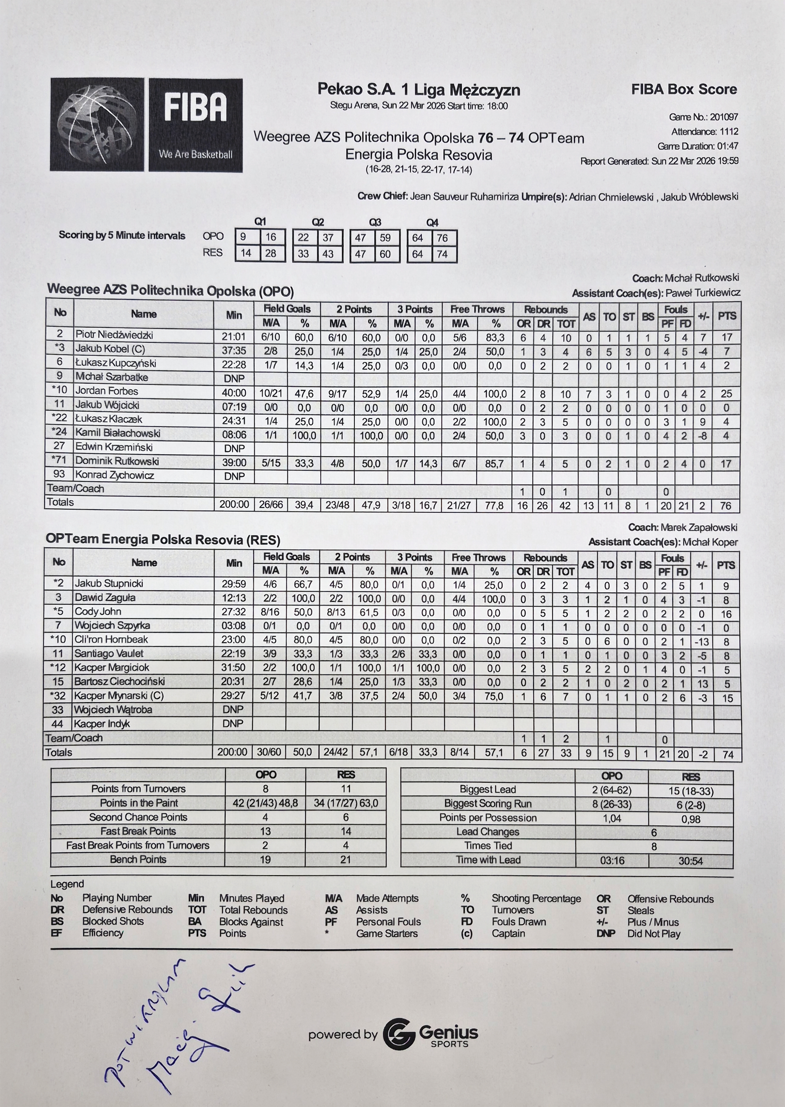 | 05:15:00 | 32, K. Młynarski, faulowany | |||