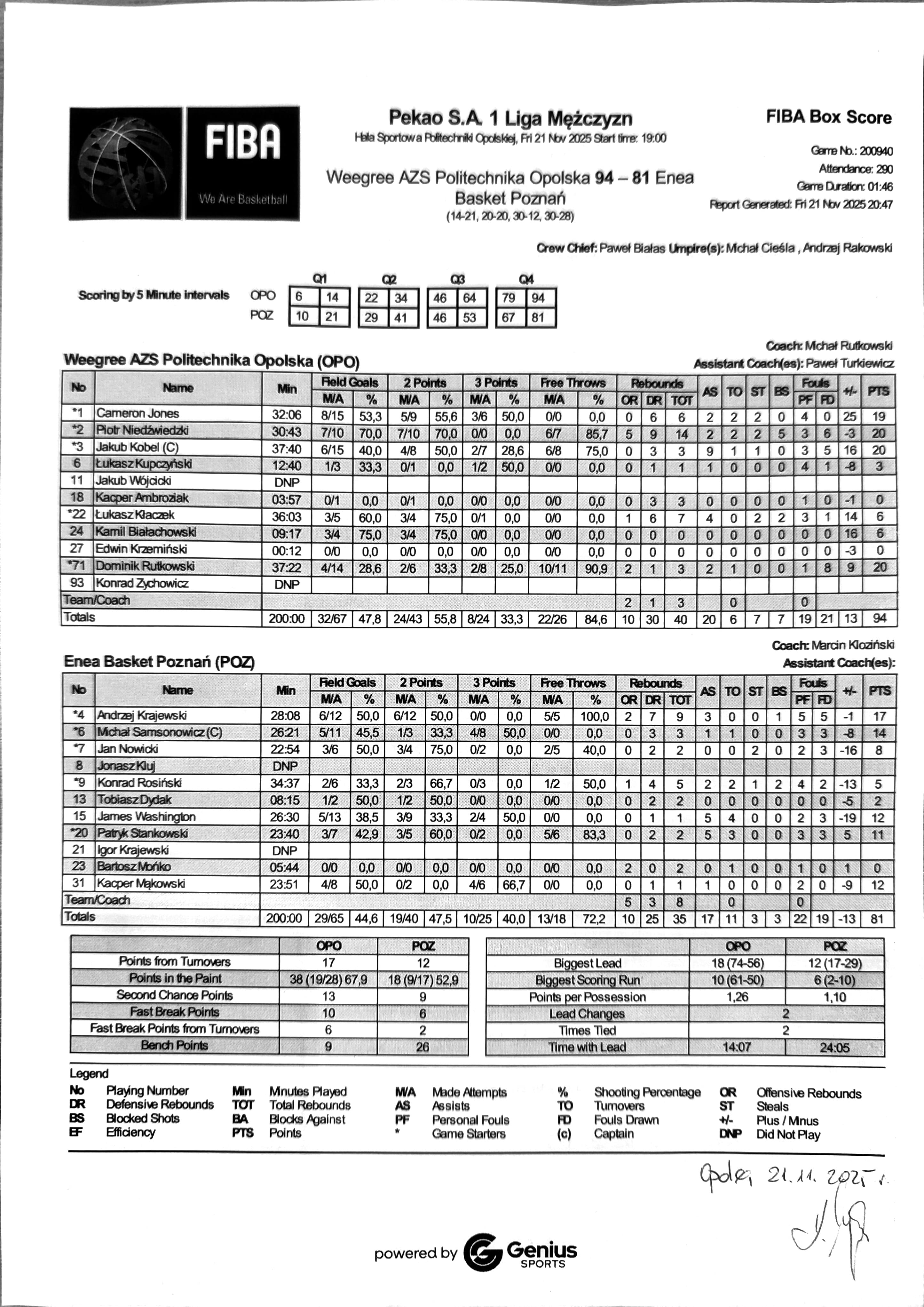 Weegree AZS Politechnika Opolska Enea Basket Poznań