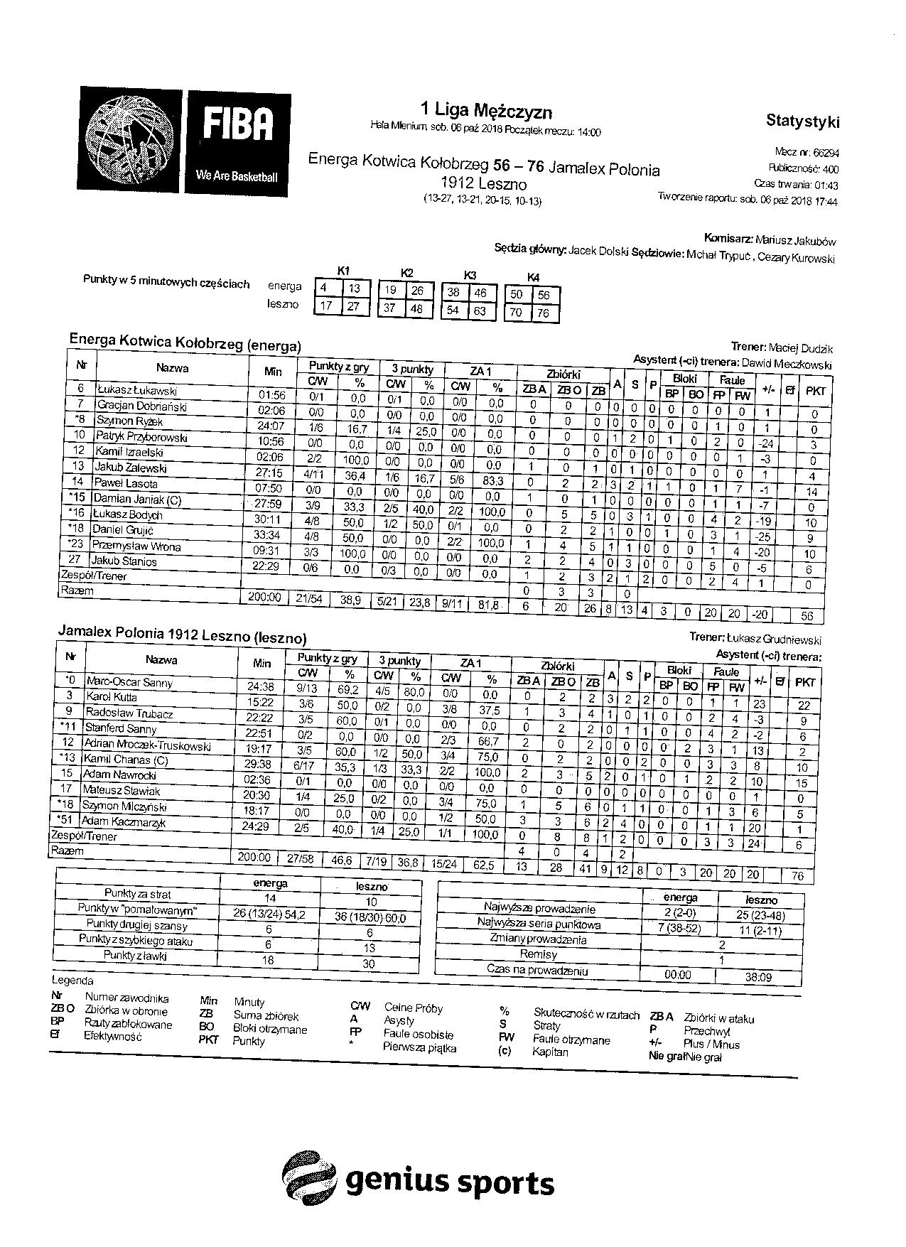 Sędziowie: Jacek Dolski, Michał Trypuć, Cezary Kurowski | Komisarz: Mariusz Jakubów