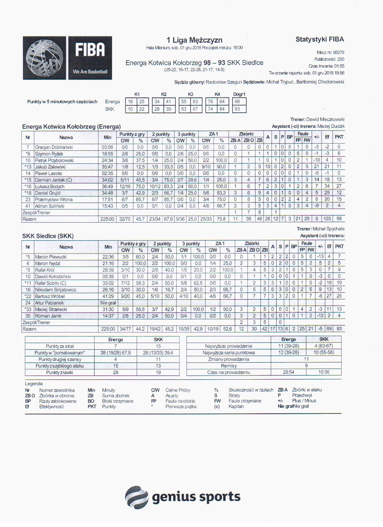 | 09:57:00 | 33, M. Strzelecki, wygrany rzut sędziowski | |||