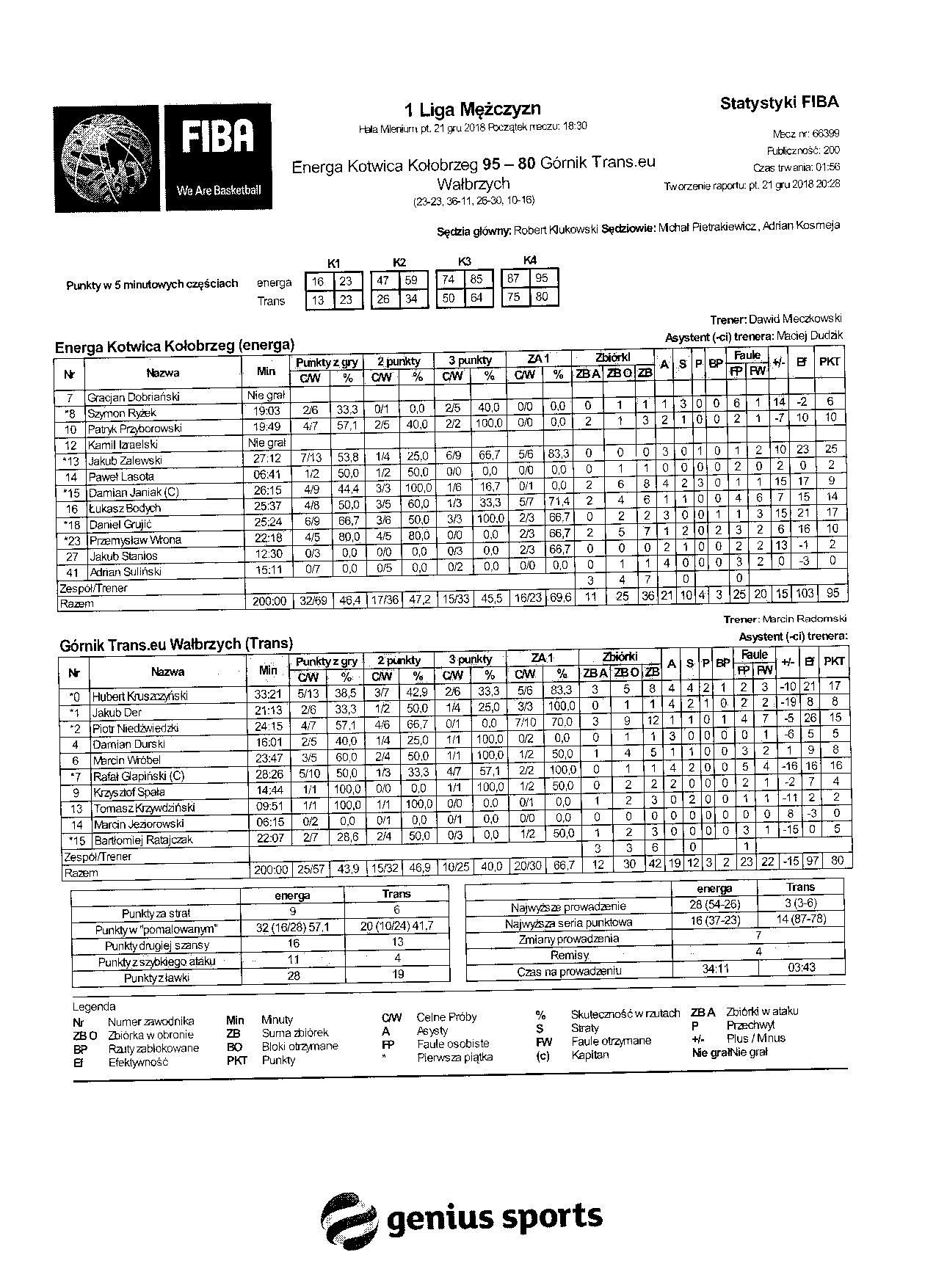 Sędziowie: Robert Klukowski, Michał Pietrakiewicz, Adrian Kosmeja | Komisarz: Jarosław Żabko