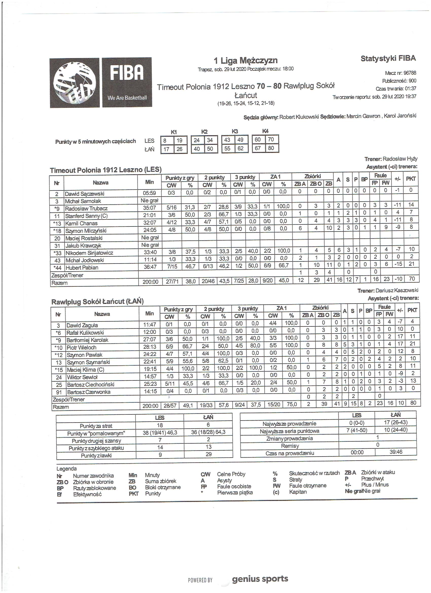 Timeout Polonia 1912 Leszno Rawlplug Sokół Łańcut